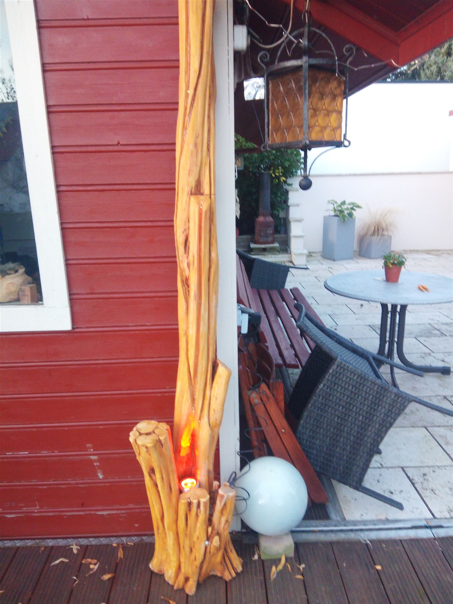Es begab sich im Jahre 2020, als unser Nachbar seinen betagten Wacholderbaum entfernen wollte. Da war ich zu Stelle und habe mir das gute Stück gesichert. Das Ergebnis seht Ihr hier. Es war eine üble Arbeit das Teil von Ästen und Rinde zu befreien. Ich denke es hat sich gelohnt und leuchten tut dieser dekorative Stamm mit der Kraft der Sonne. Also herzlichen Dank an Stefan und Sohn Egon, die mir sehr geholfen haben.