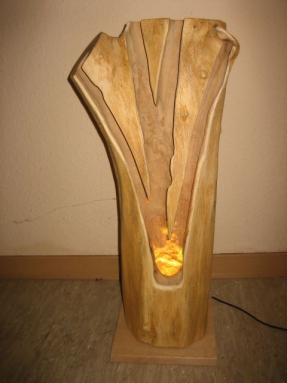 Diese Standleuchte wurde aus einem Zedernstamm gefertigt.