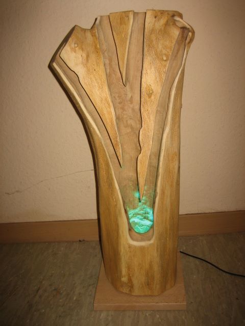 Innen hohl und innen aufwendig ausgearbeitet. In ihrer schlichten Einfachheit zaubert diese Leuchte stimmungsvolles Licht in jeden Raum. Aufwendig verarbeitet, geschliffen und gewachst. Der eingebaute Leuchtstrahler ist wasserdicht und kann farblich unterschiedlich, je nach Stimmungslage, eingestellt und gedimmt werden. Dieses Objekt ist für den Innen- als auch Außenbereich nutzbar. In Freien sollte diese Wurzelleuchte regengeschützt stehen.