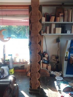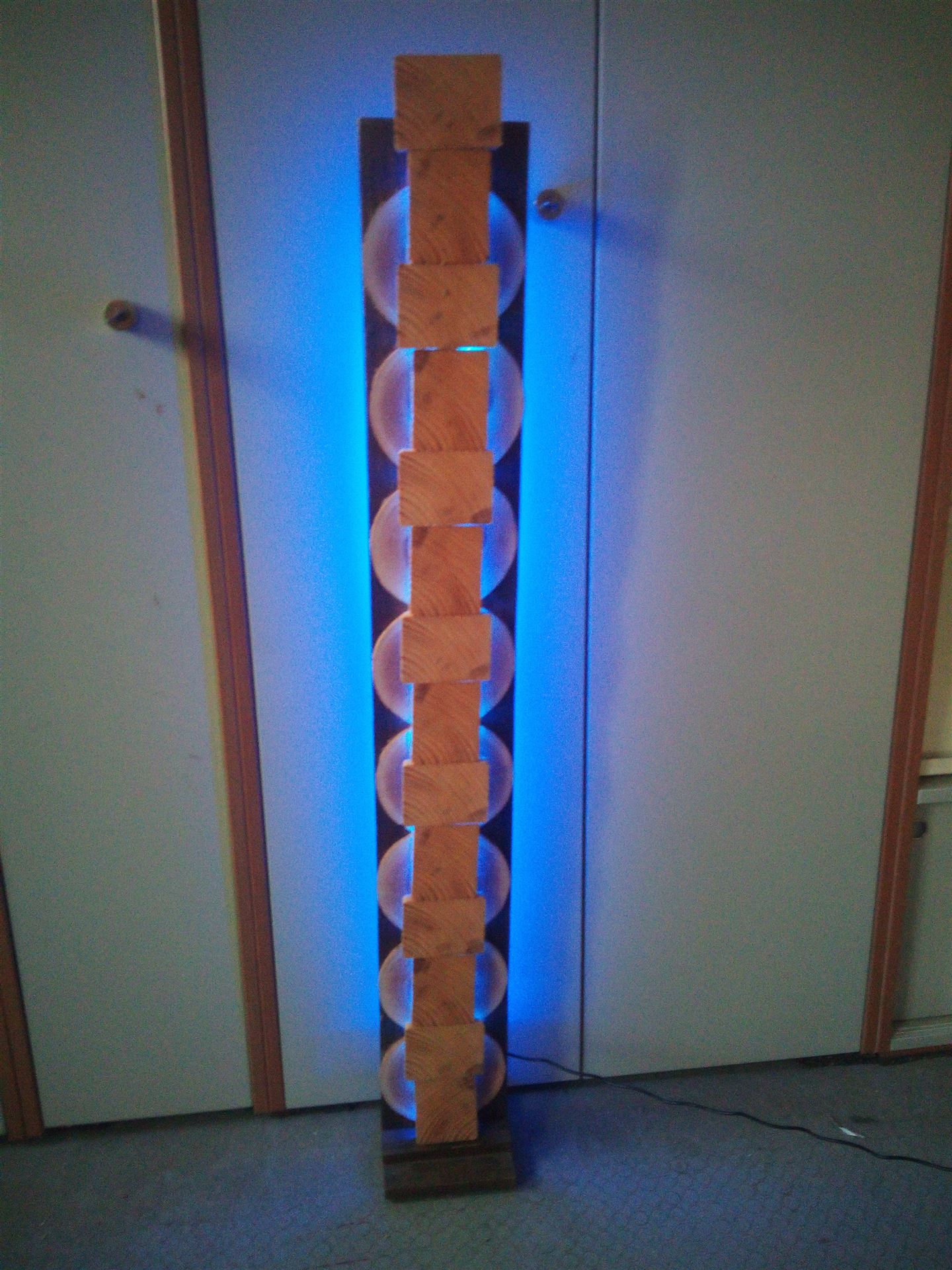 Stehleuchte aus Apfel-,Fichten- und Eichenholz
