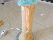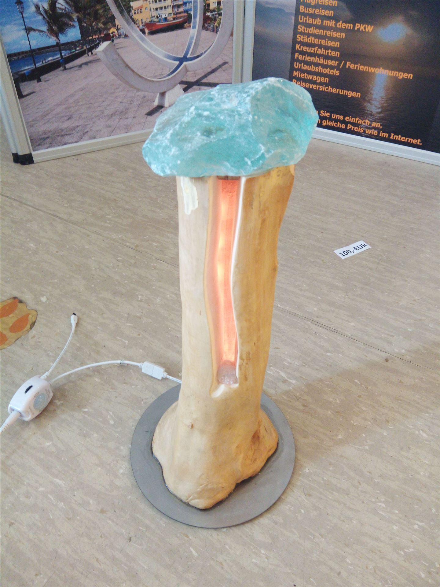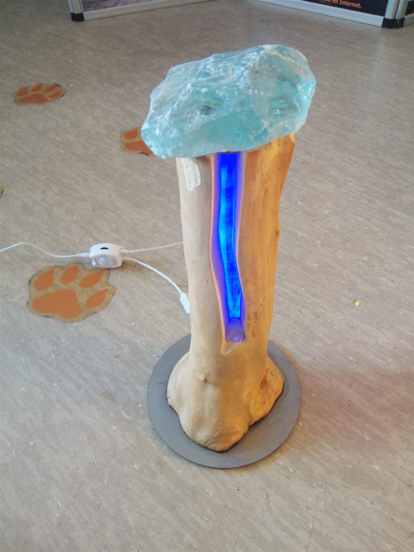 Diese kleine Tischleuchte ist aus der Veredlungsstelle eines Pesterwitzer Apfelbaumes gefertigt. Die eingebauten Leuchtelemente strahlen indirekt nach vorne und an der rechten und linken Seite.