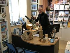 Gepackt vom Erlebnis aus Nichts Alles machen zu können, folgten anfänglich bearbeitete Baumstämme mit Spots zur indirekten Beleuchtung, beleuchtete Beistelltische und Kerzenständer mit verschiedenen Pesterwitzer Motiven. Auch Kettensägen Carving (das Erschaffen einer Figur aus einem Stamm) war Teil meiner Expeditionsphase, was allerdings vorerst eingestellt werden muss, da der eigene Bestand an Bäumen nicht weiter reduziert werden darf. Um einmal meine Frau zu zitieren: „Wir haben einen Garten und kein Holzlager“